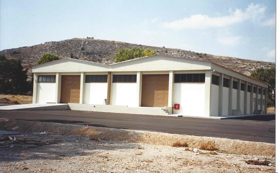 In the heliport at Pachi Megara, a warehouse for Chinook helicopters' spare parts ws built. The frame consists of reinforce concrete and a metalic roof, its area is 1200sq.m. and the construction was completed in 1999.